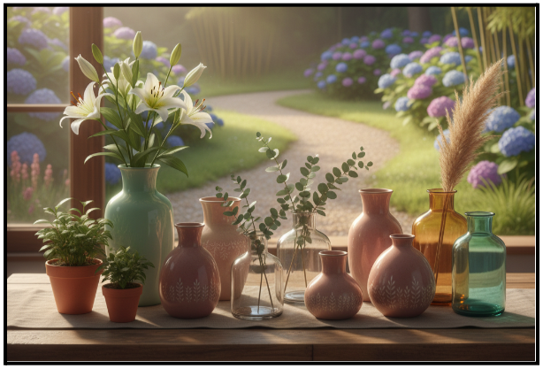 • Glass Vases – Transparent and perfect for a modern look, suitable for flowers and decorative stones.