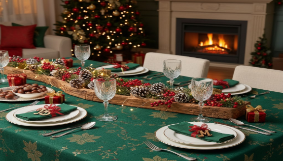 Green is a classic shade of Christmas—a symbol of freshness, hope, and festivity. When you use a green tablecloth, it instantly creates festive charm. Whether your theme is traditional or modern minimalist, a green tablecloth blends in.