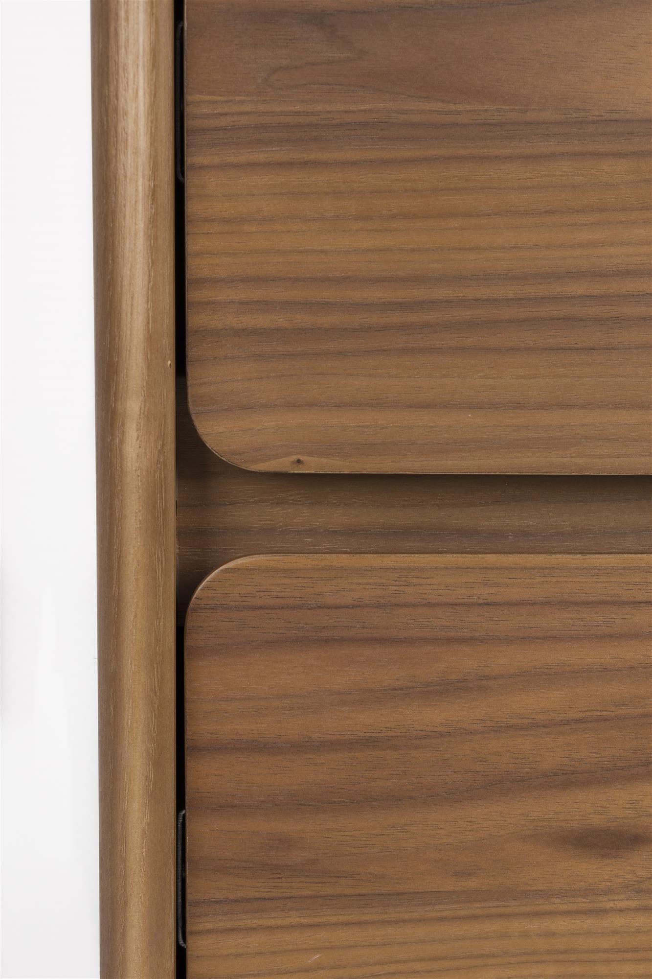 The Rise series – including the chest of drawers, wall cabinet, and bedside table – lifts the atmosphere in any space to new heights. Its rounded lines immediately catch the eye, while the ribbed glass sliding door adds a playful touch to the wall cabinet and bedside table. Choose between light oak or warm walnut finishes.