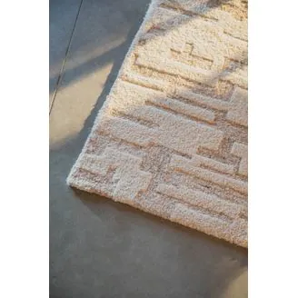 With a subtle beige palette, its pattern of stripes and blocks creates an interesting visual pattern. The handwoven technique brings a delightful relief, making this rug a versatile fit for any interior. Embrace the artistry that lies beneath your feet with the Hills rug.