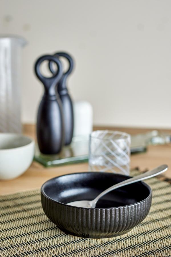 Neri Bowl by Bloomingville in black stoneware has a minimalistic and nordic look. The classic shape is complemented with fine details, giving a decorative touch to the monochromatic design. The size of the bowl makes it ideal for serving breakfast, salads, and similar dishes. Dishwasher safe.