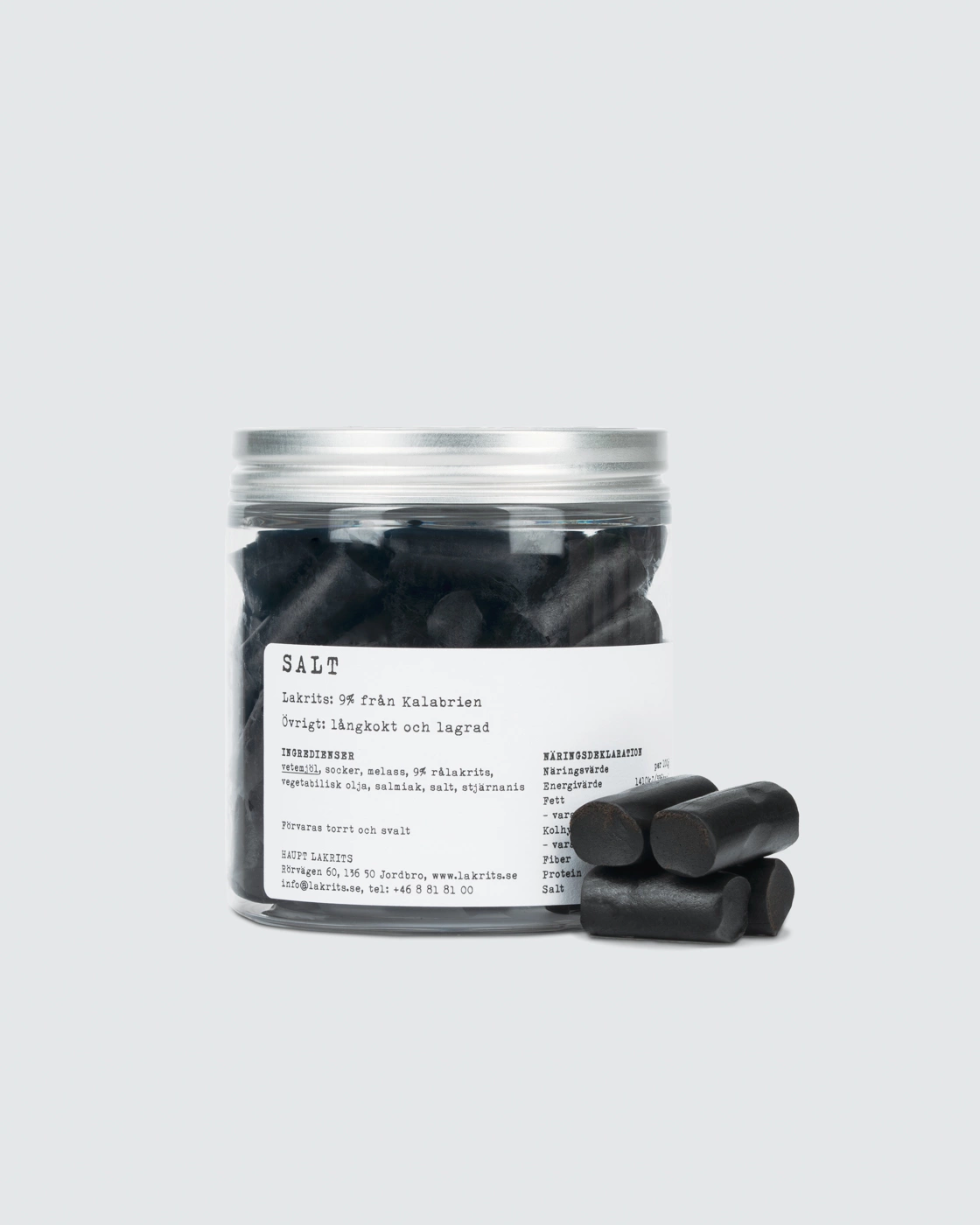 Salted licorice with 9% raw licorice from Calabria – deep, intense and elegant in every bite.