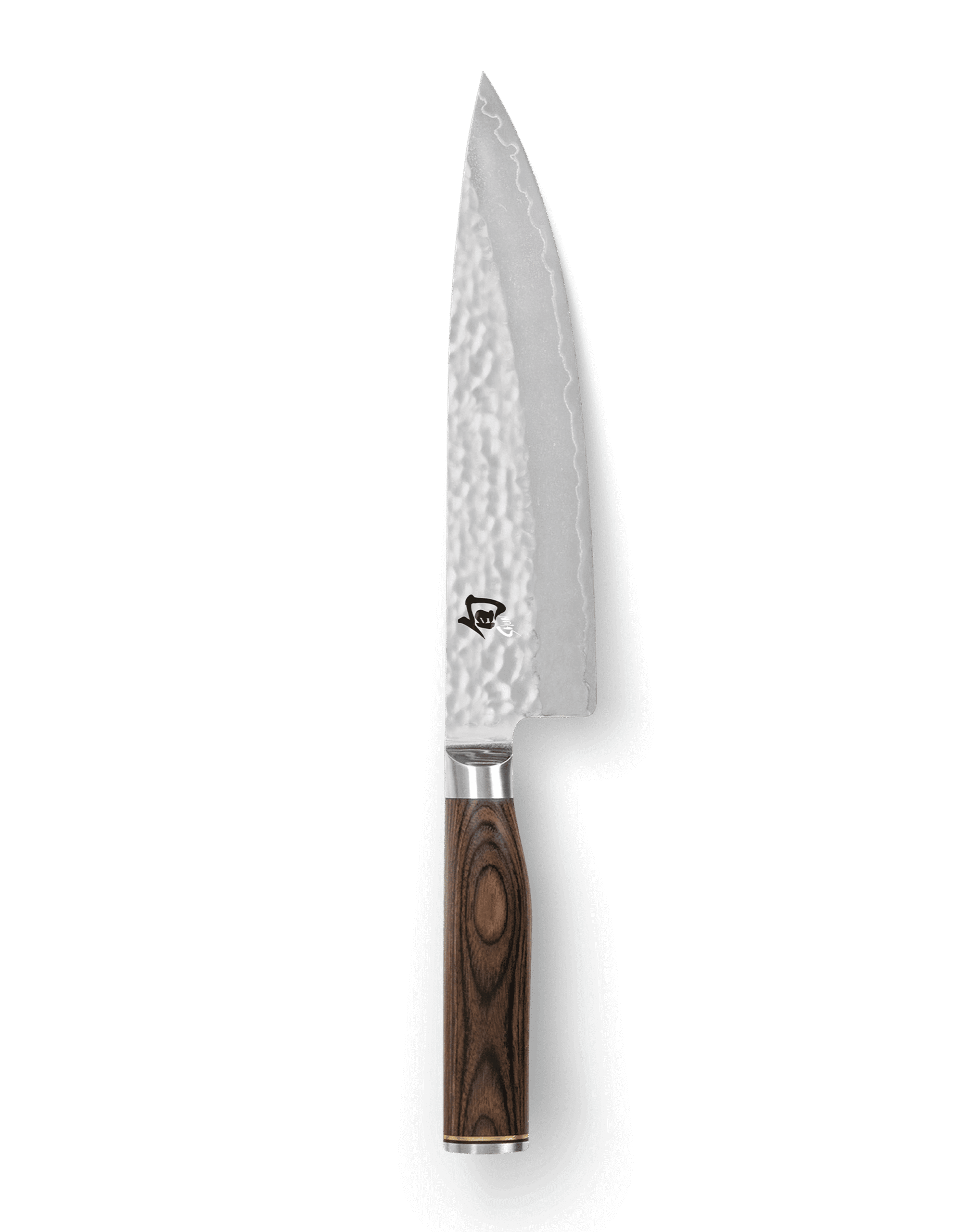 The Shun Premier blade’s core fashioned from extremely hard VG-MAX steel and is enveloped in 32 layers of Damascus steel. This combination of different steel grades makes the blade both hard and flexible at once. The double-sided blade is easy to use because it its light weight and guarantees a clean and precise cut. The incorporation of a hammered surface underlies not only aesthetic reasons, but also serves the release of material from the blade thanks to the resulting air pockets.