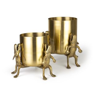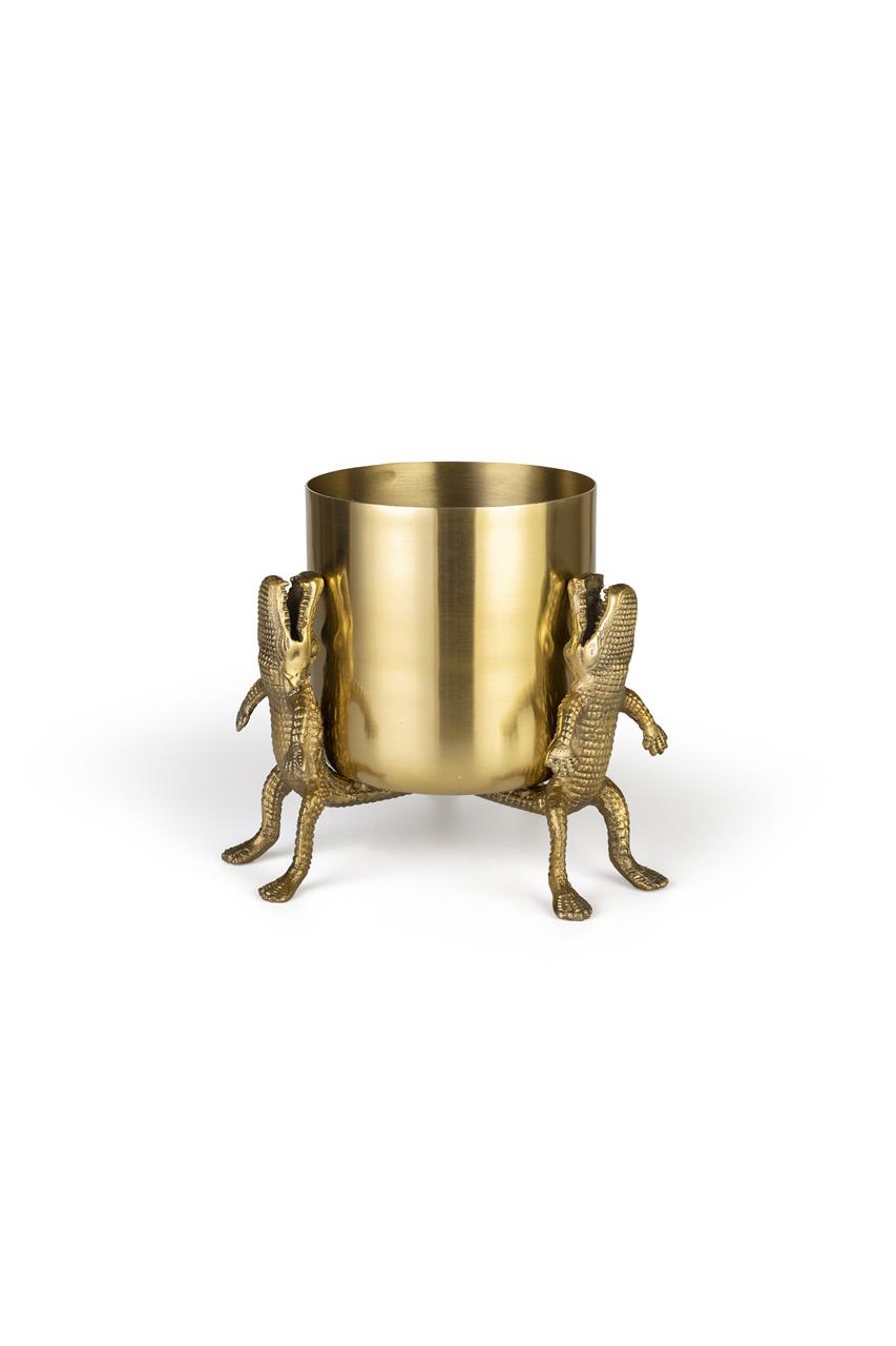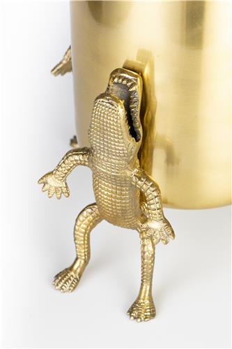 Bold Monkey Surrounded By Crocodiles vase M The crocodile is the latest animal to join the Bold Monkey Zoo. With this design, they’re celebrating the symbolism of primordial wisdom, efficiency and power that crocodiles are often known for. The circular vase and the crocodile-covered base are separate parts, so you’re free to style – and use – this piece wherever and however the mood strikes. Gold-painted aluminium The vase and the base are separate Available in two sizes